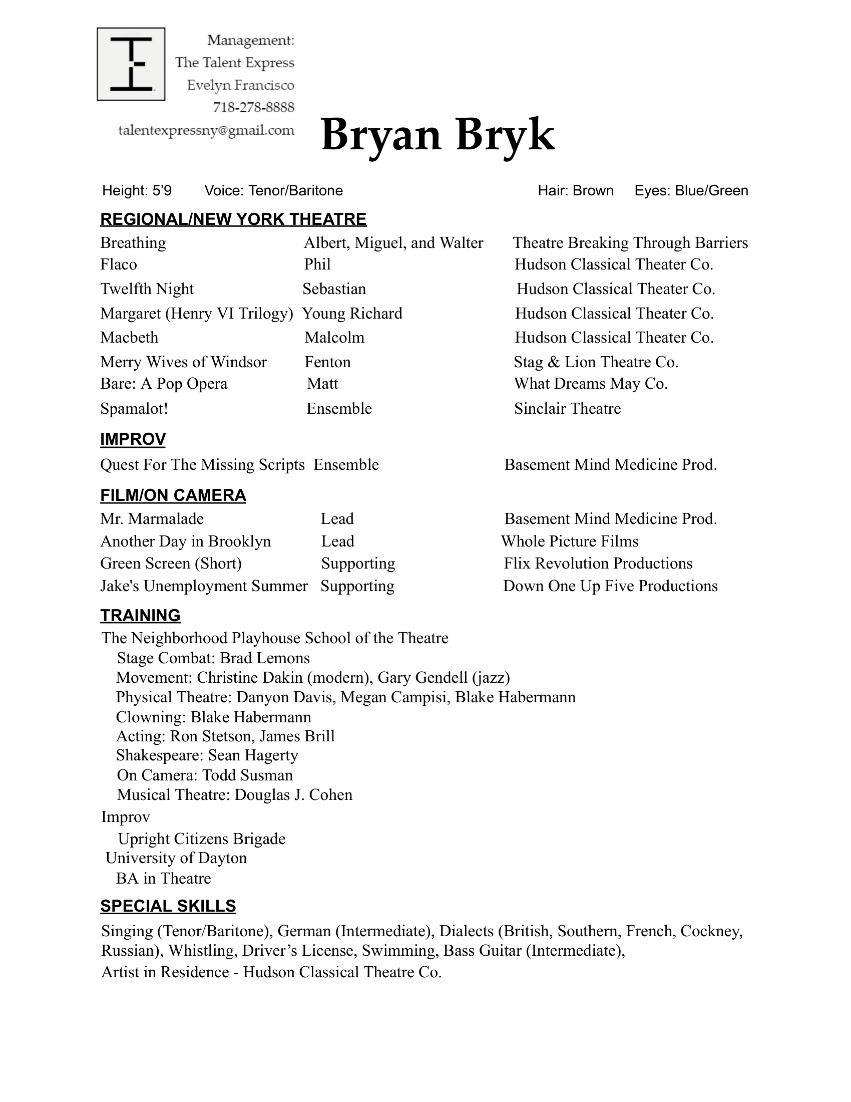 Actor - Singer - Voice Actor - Audiobook Narration